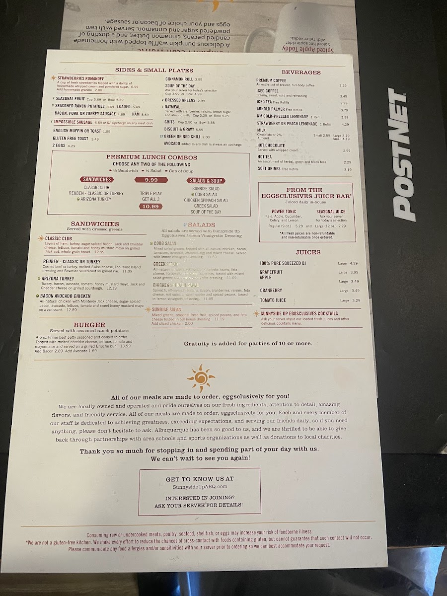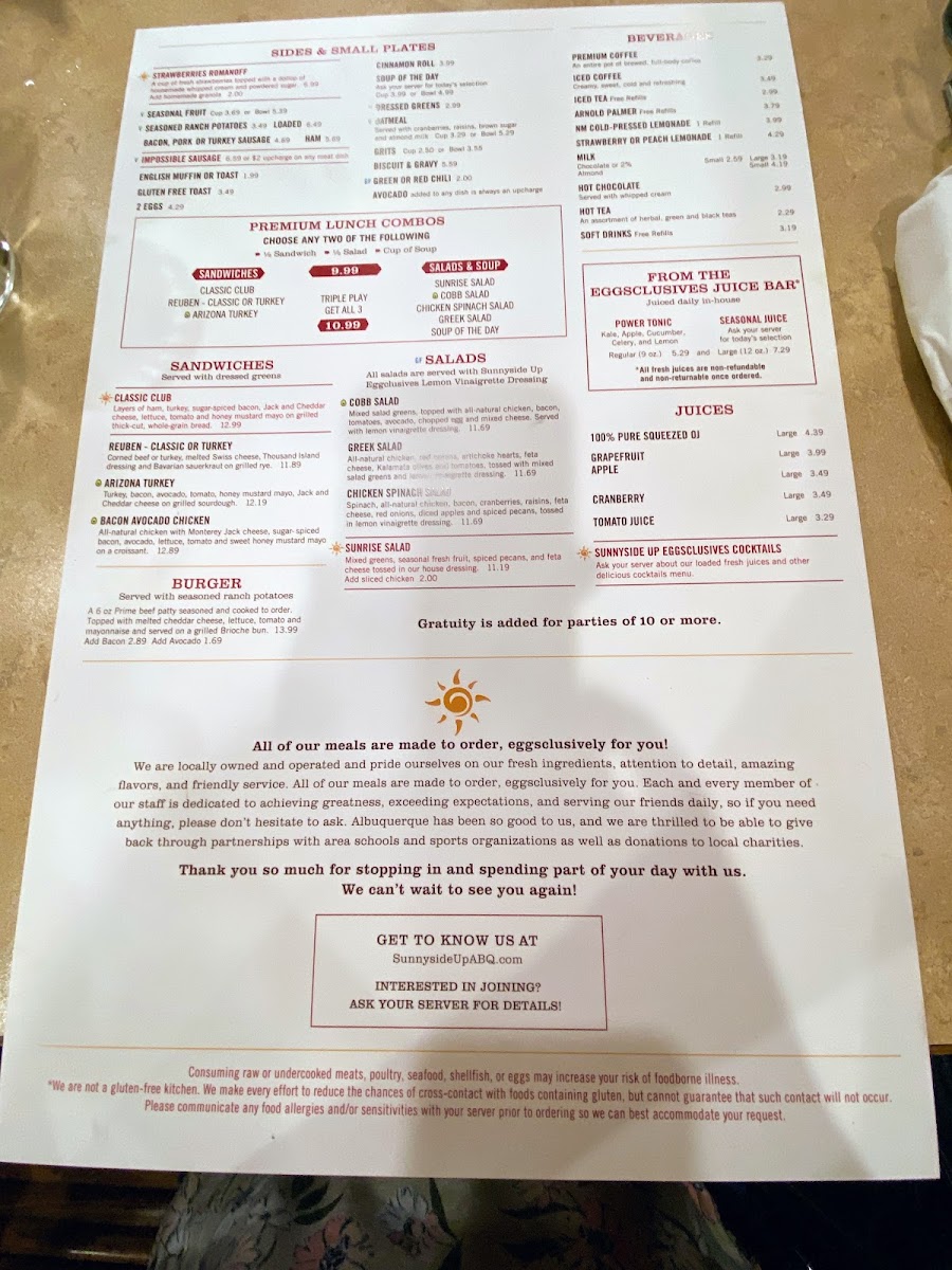 Welcome to Sunnyside Up Breakfast and Lunch Cafe, a delightful gem tucked away in the heart of Albuquerque, NM. This breakfast haven is a must-visit for anyone looking to indulge in mouthwatering morning and midday fare. The café is located at 6909 Menaul Blvd NE Suite A, easily accessible for locals and visitors alike, and can be reached at +1 505-888-3447.